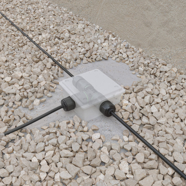 Conector de alta seguridad de hasta 16A y 240V, con protección IP68 frente al agua, el polvo, los rayos UV y la corrosión. Diseñado para conectar conductores de cobre en instalaciones de iluminación exterior, es ideal para jardines, zonas húmedas o instalaciones subterráneas como túneles y canalizaciones.