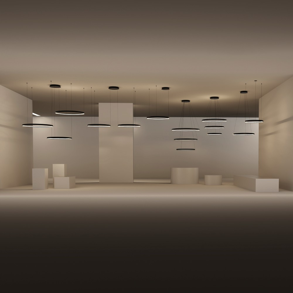 Florón para luminarias Loop acabado negro texturado de Ø29cm de díámetro con driver de 100W incluido.
