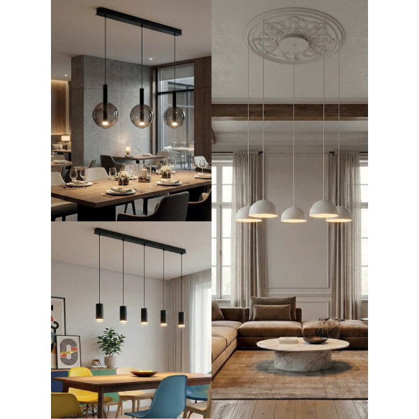 Florón negro de superficie para 5 salidas de luz acabado negro negtexturado.
