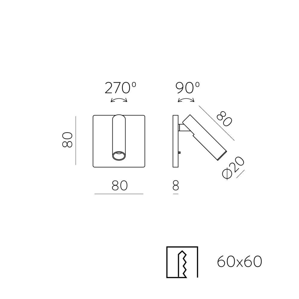 Su tamaño compacto de 80 × 80 mm facilita una integración limpia en la pared, aportando iluminación puntual sin recargar el espacio. Una opción práctica, elegante y eficiente para quienes buscan apliques empotrables LED de diseño minimalista.