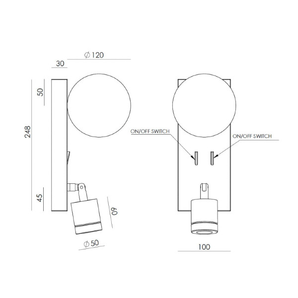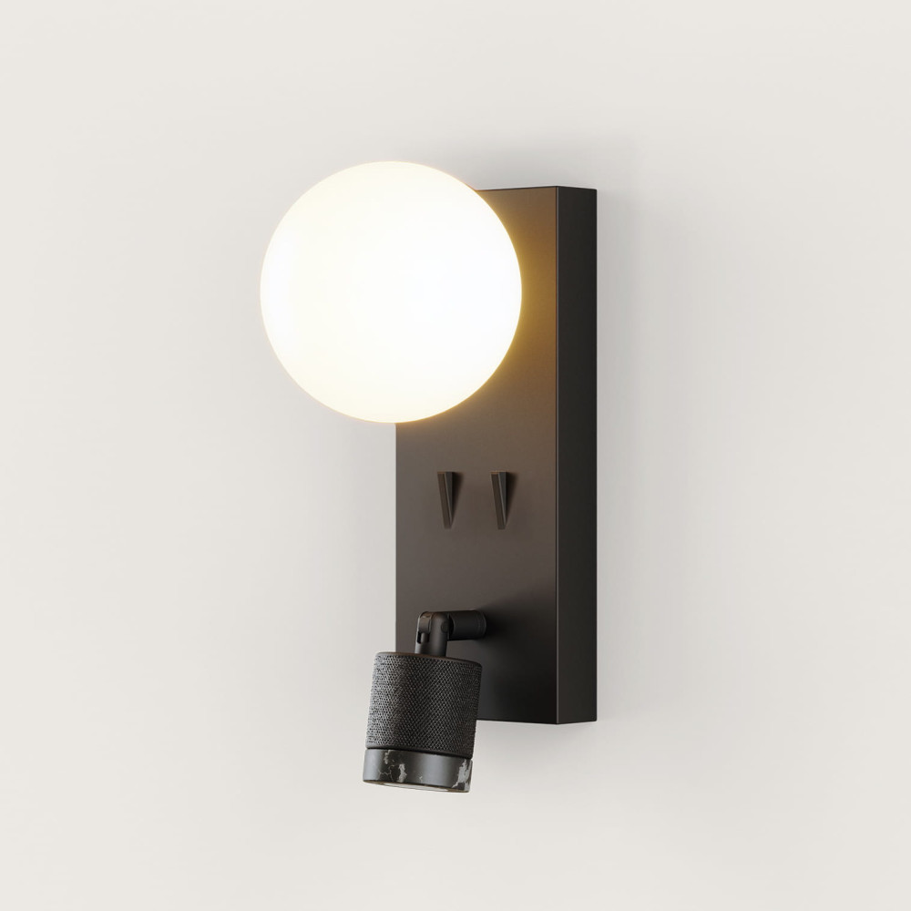 Aplique lector LED metálico con esfera de cristal y detalle de mármol, 3 acabados disponibles. 3W, 300lm, 2700K, ON/OFF