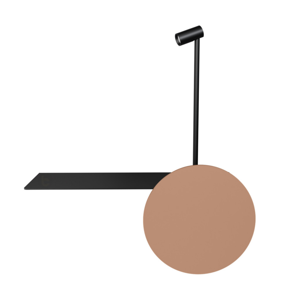 Aplique lector derecho negro-oro rosa con toma USB-C y dos interruptores. 1,5W, 120lm, 2700K, CRI90