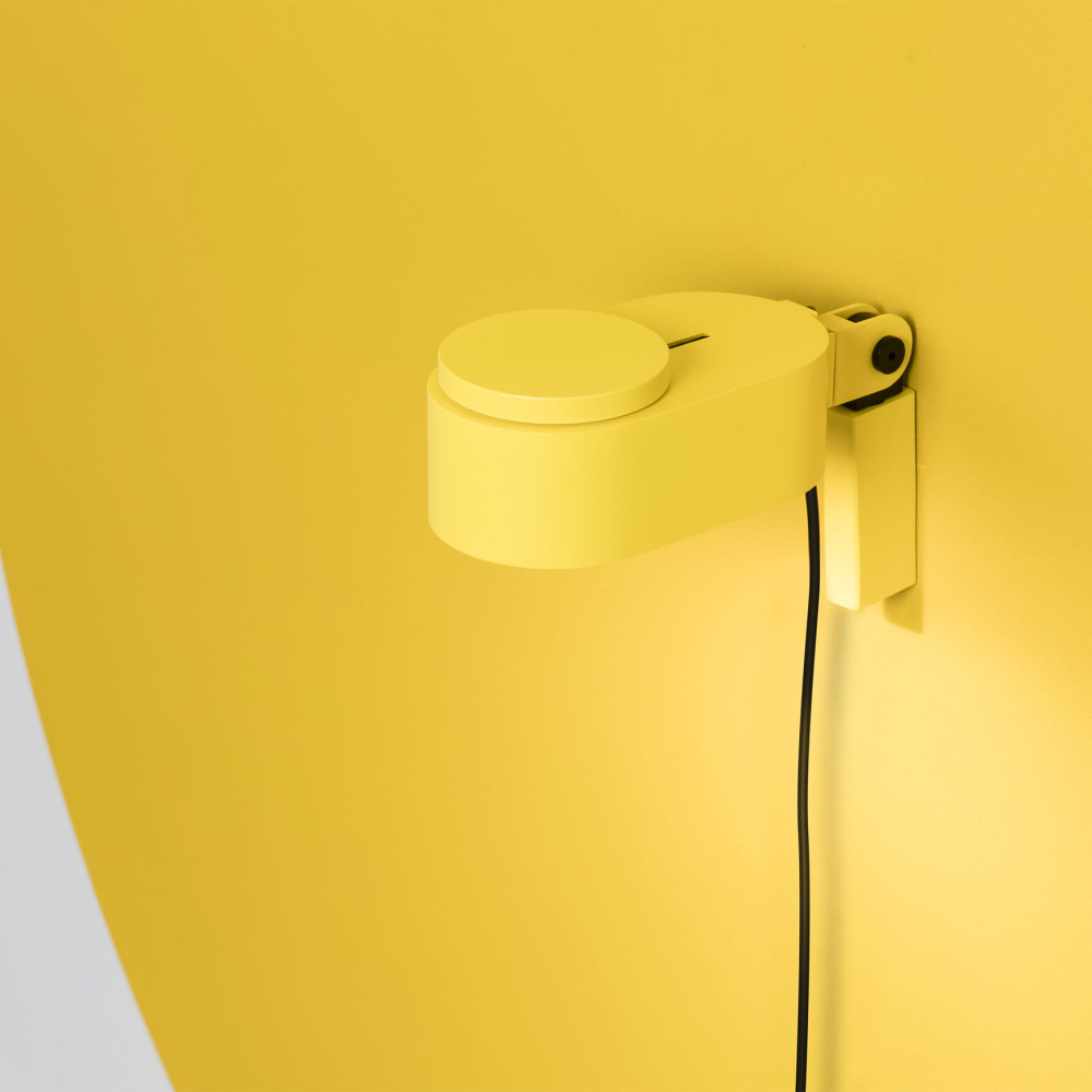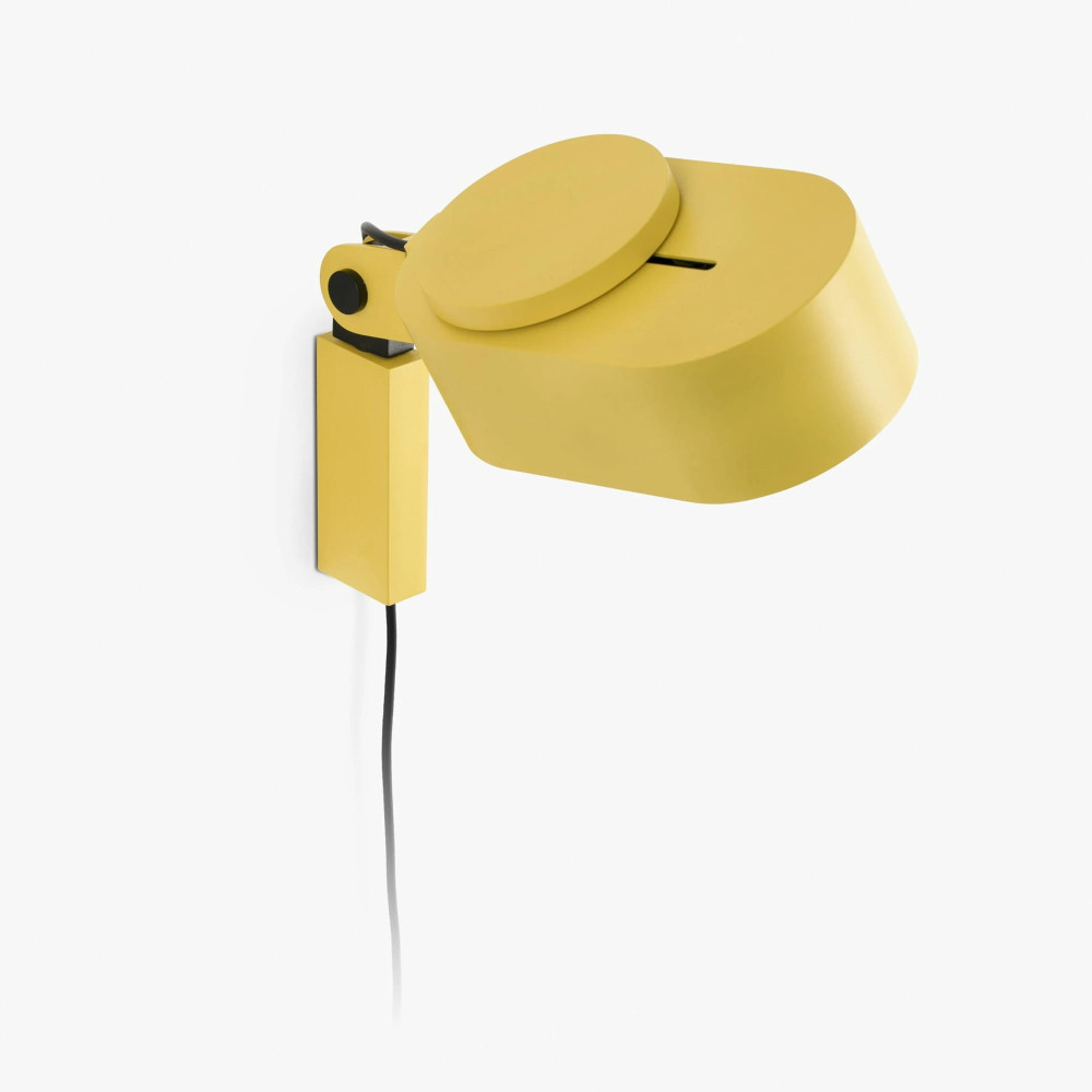 Inviting Light es una familia diseñada por Bohman & Folenius para iluminación del hogar. Su característica principal es que la luz se desplace para acompañarte en las diferentes necesidades y estados de ánimo. El cabezal se puede regular en su eje horizontal y vertical y la fuente de luz es dimable tanto en intensidad deslizando la circunferencia superior a lo largo del cabezal como temperatura de color girando la rueda. Este aplique amarillo esta pensado para iluminar espacios de trabajo, lectura, salones o dormitorios.