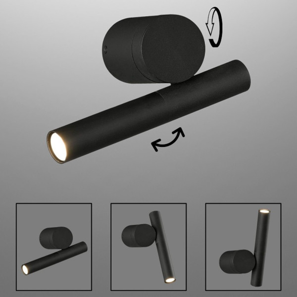 Aplique de pared lector acabado negro mate. Admite bombilla G9 incluida (3000K o 4000K) de 3,3W, 220lm, 60º apertura lumínica no regulable en intensidad.