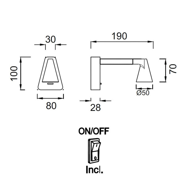 MANTRA ÁFRICA 190 Led Aplique Interruptor Negro