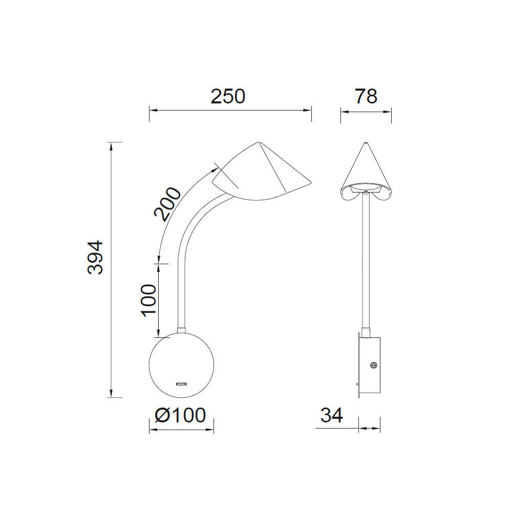 Aplique lector negro con interruptor integrado. LED 7,5W, 3000K, 660 lm, CRI80