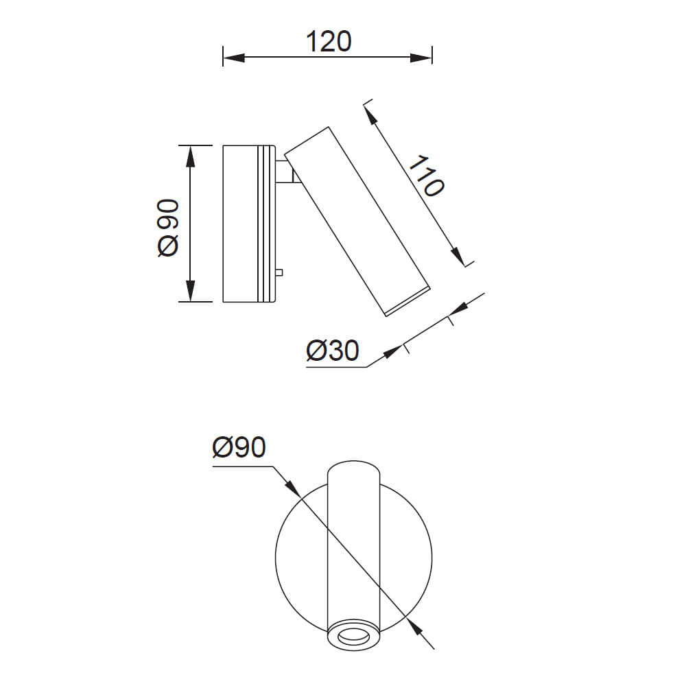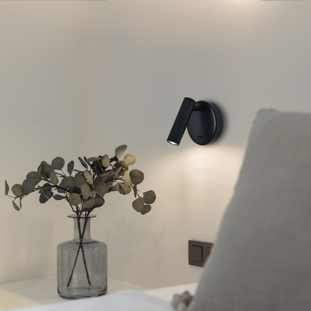 Aplique de lectura LED acabado en negro. 3W, 3000K, 210lm, interruptor ON/OFF