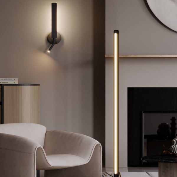 Aplique de lectura LED negro con luz directa e indirecta. 11W, 550lm, CRI80, 3000K