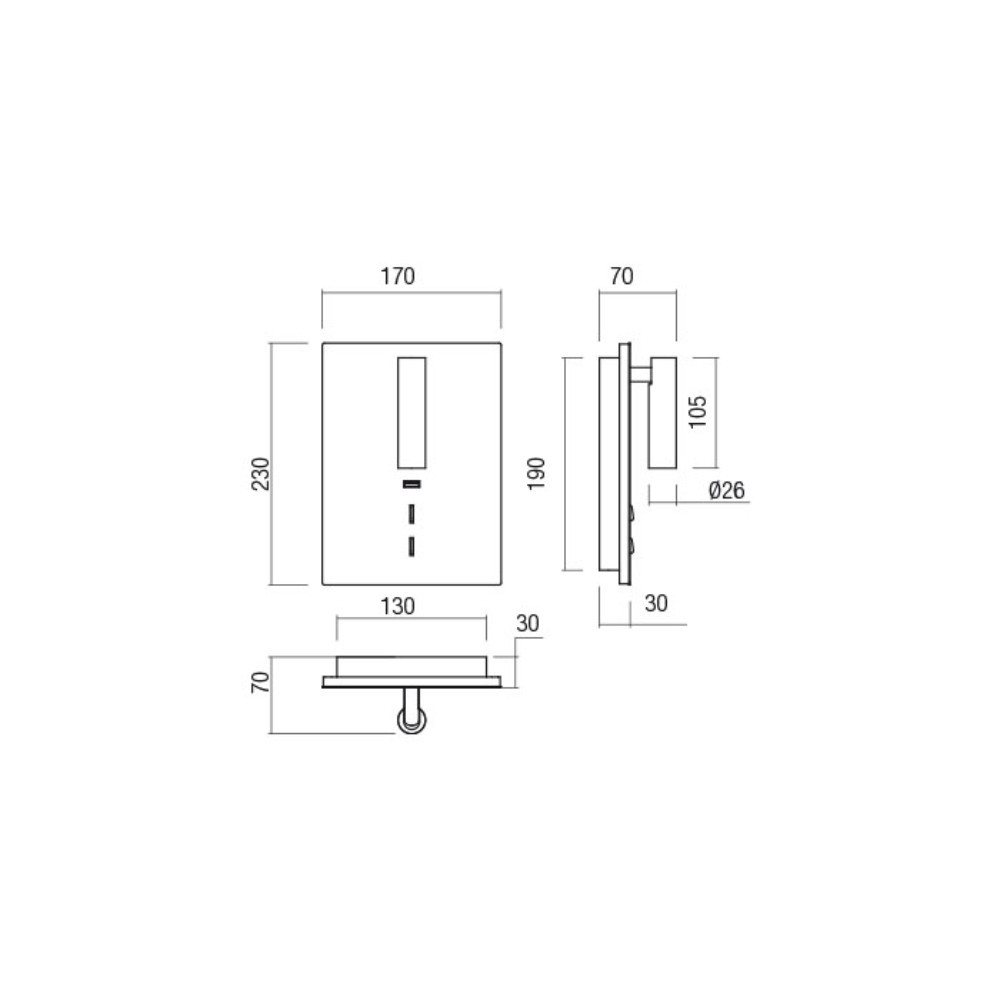 Aplique lector níquel con dos interruptores y puerto USB. 16W+3W, 3000K, 860lm + 135lm, CRI90