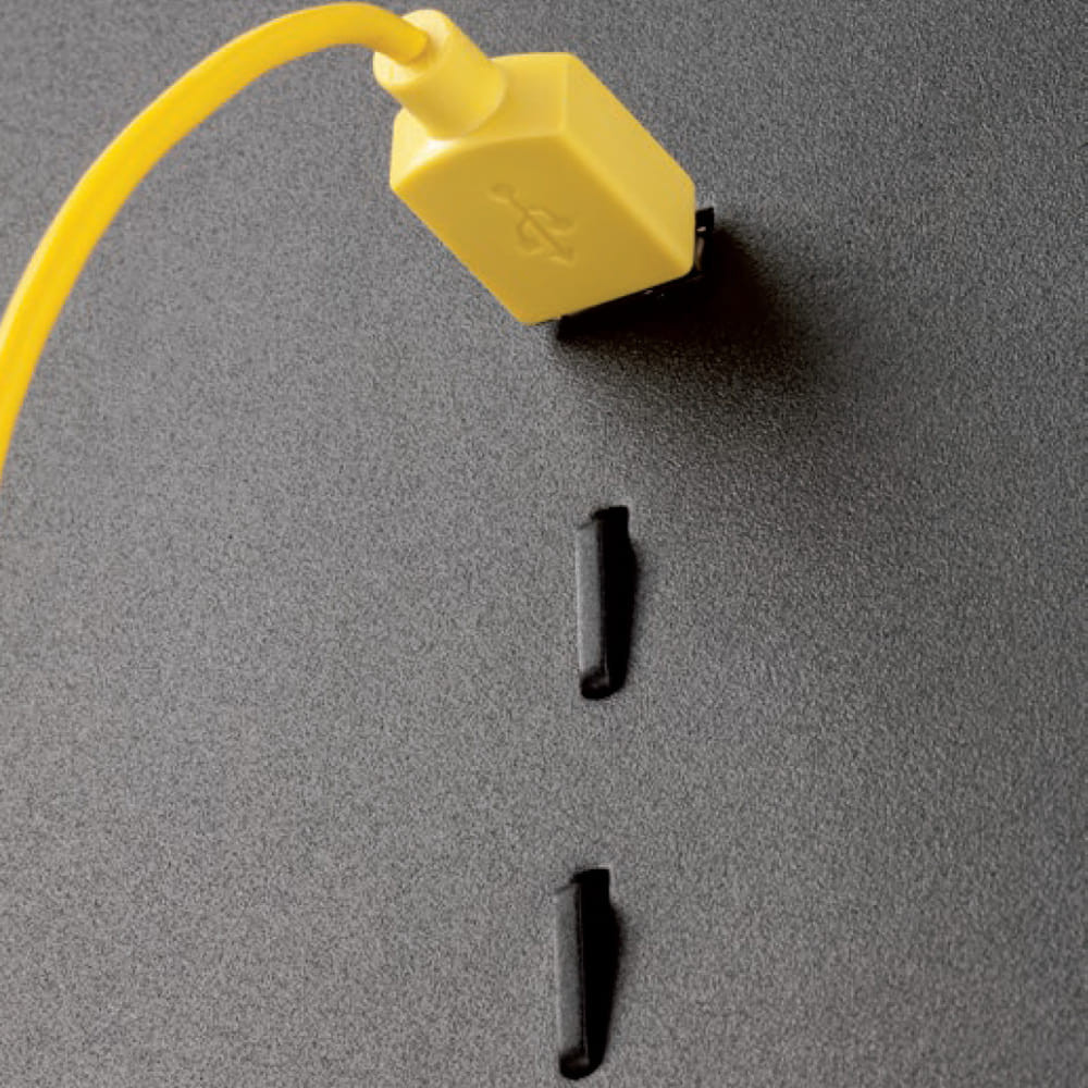 Provisto de puerto de carga USB e interruptores ON/OFF.
