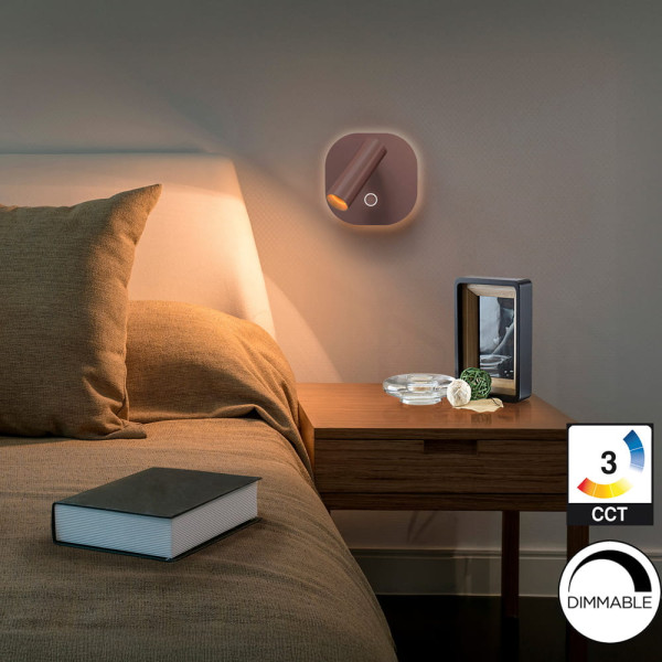 Aplique de lectura LED con interruptor táctil, acabado marrón óxido. 2,1W + 6W, 2700-4000K, 167+391 lm, dimable