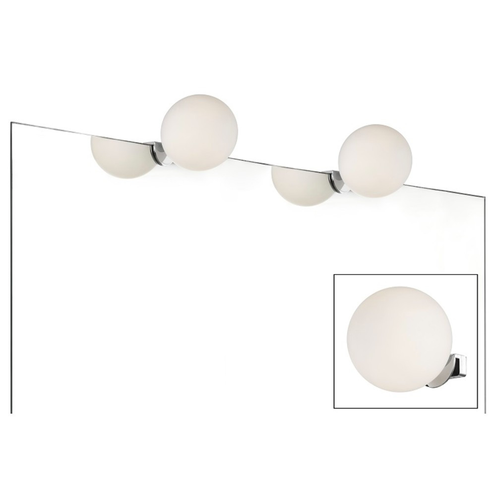 Aplique para espejo de baño con pinza fabricado en cristal opalizado y base cromada. Admite bombilla G9 no incluida. Aplique con IP44 apto para baños.
