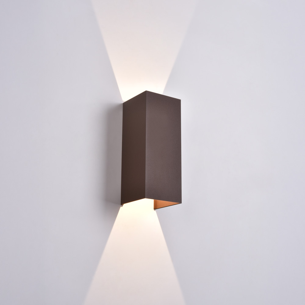 Aplique LED IP65 corten de 10x25 cm, haz de luz ajustable. 2x5,5W, 1060Lm, 2700-3000K, CRI90, driver incl.