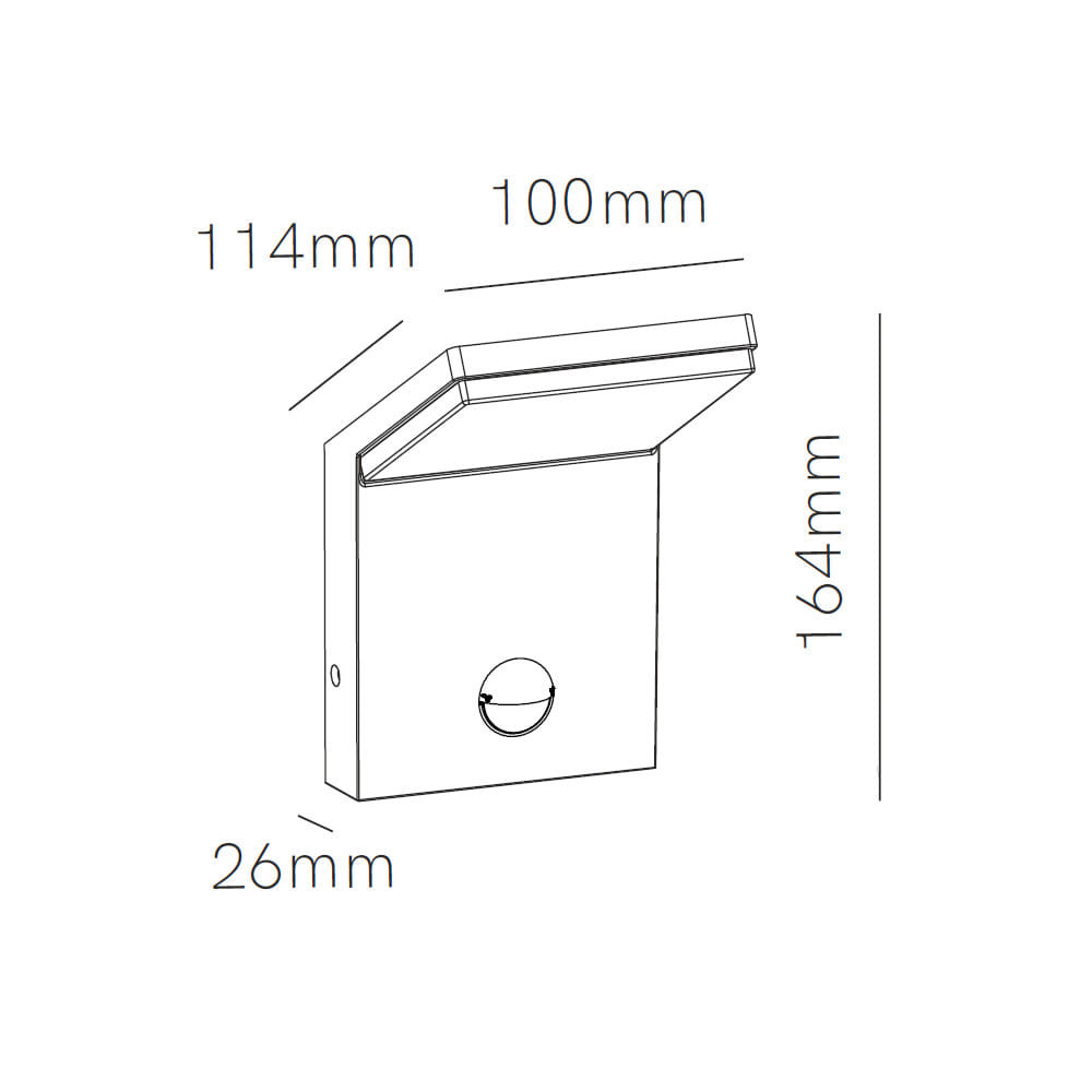 Aplique negro IP54 con sensor PIR de movimiento. 9W, 3000K, 690lm, 120º, IK08