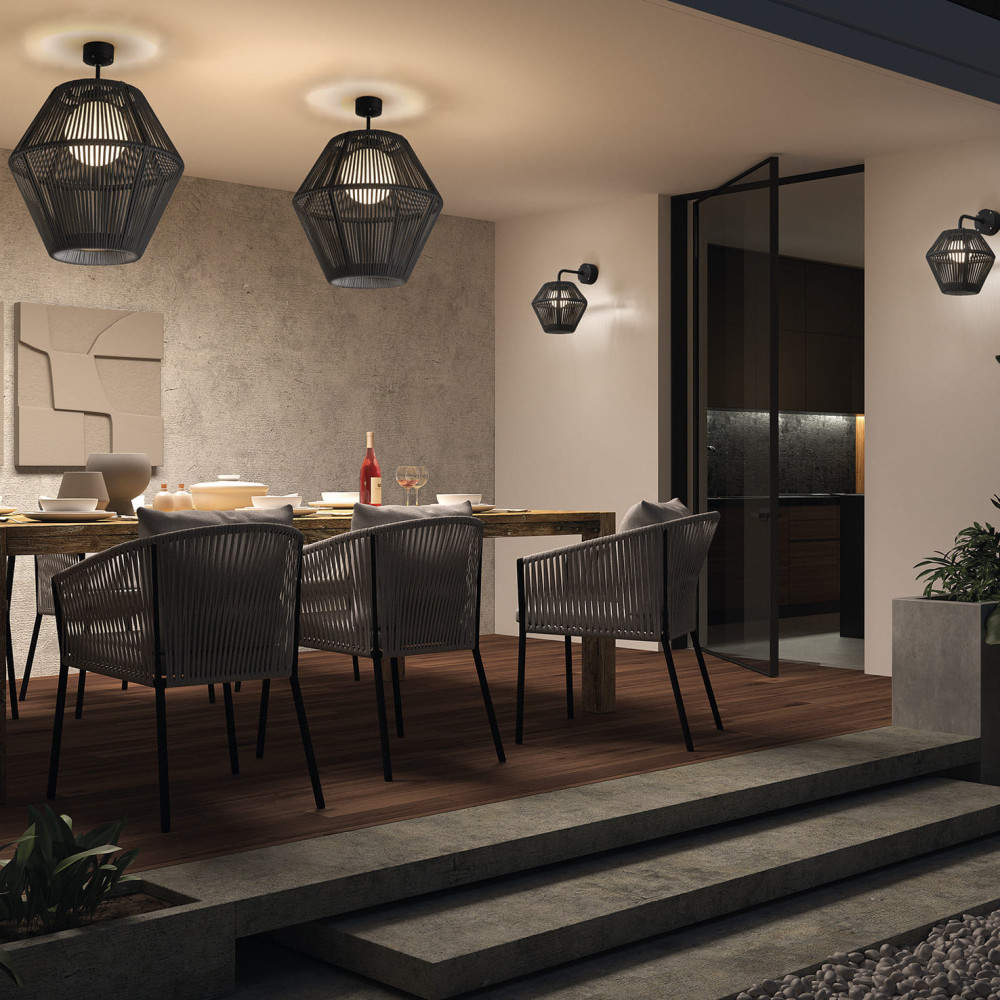 Aplique de pared LED con pantalla de ratán sintético en acabado grafito apto para exterior con IP65