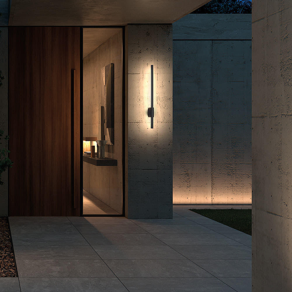 Lance Piqueta de suelo en longitud 1200mm, un aplique de pared con iluminación indirecta y un mini proyector lineal orientable de 1000mm....