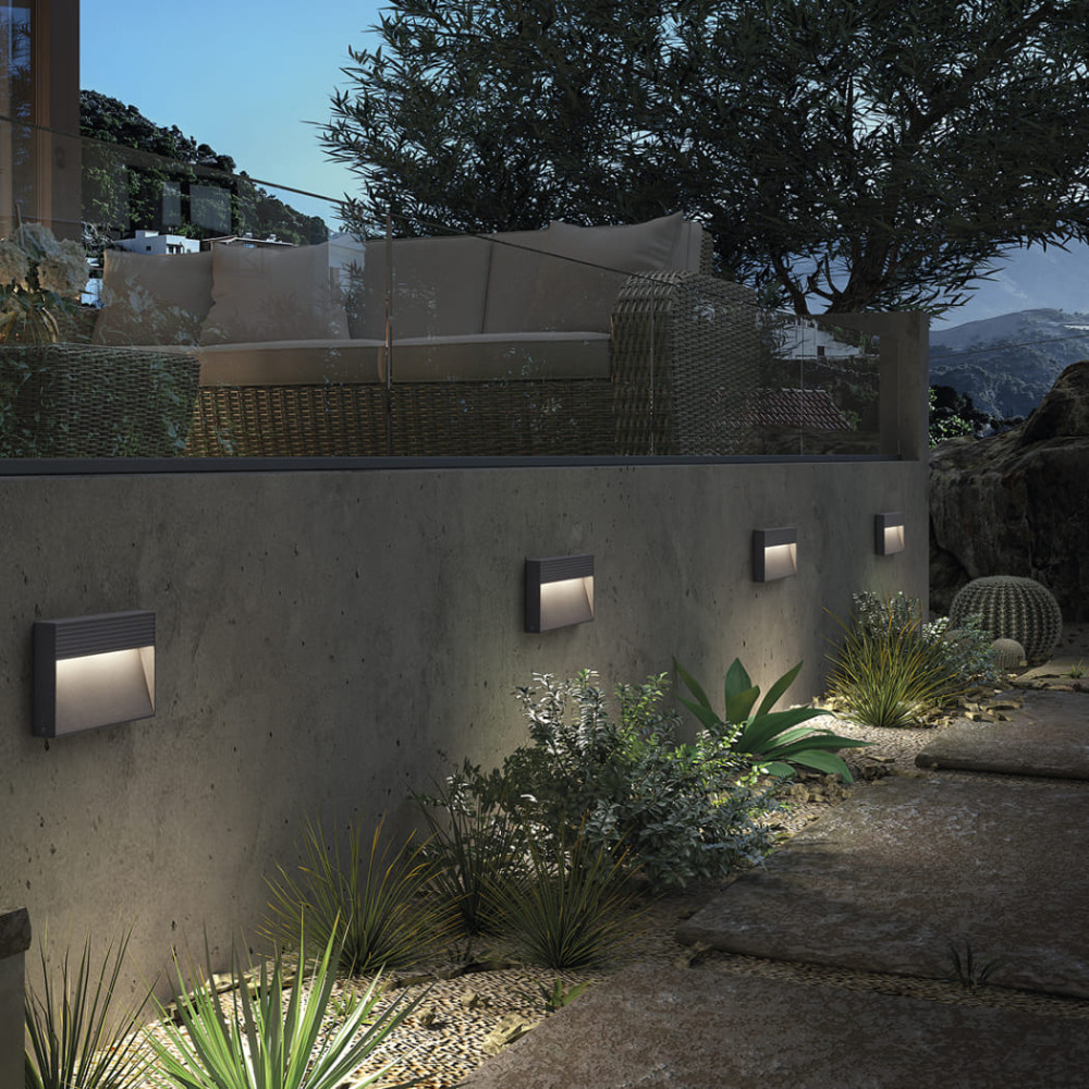 La familia Rima, en sus versiones empotrables y de superficie, está fabricada en aluminio y con un grado de protección IP65. Está disponible en tres acabados (blanco, antracita y marrón) y diferentes tamaños y formas (cuadrada, rectangular y vertical); pudiendo elegir la temperatura de emisión entre 3000K y 4000K. Gracias a su versatilidad son ideales para iluminar cualquier espacio exterior.