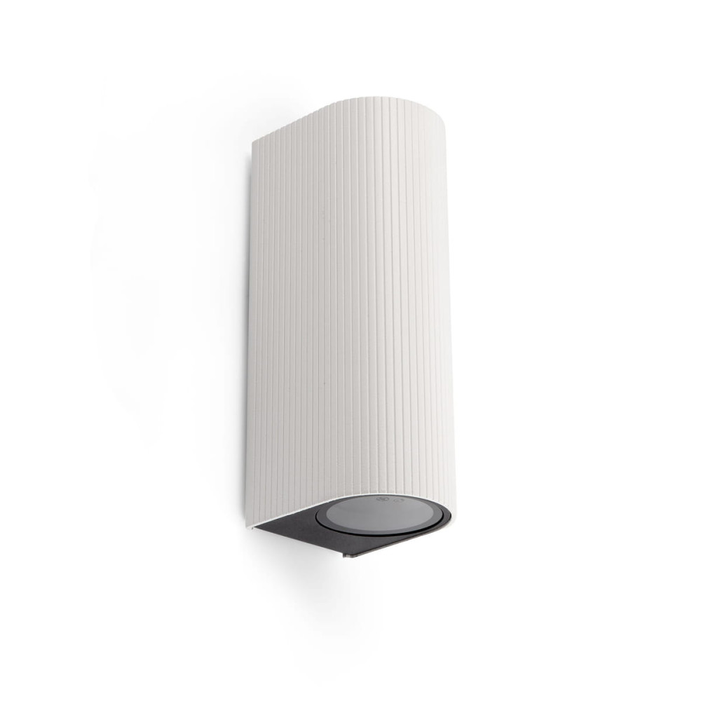 Aplique de pared IP65 de aluminio, acabado blanco, con detalles acanalados. 2 x GU10 LED (No incl.)