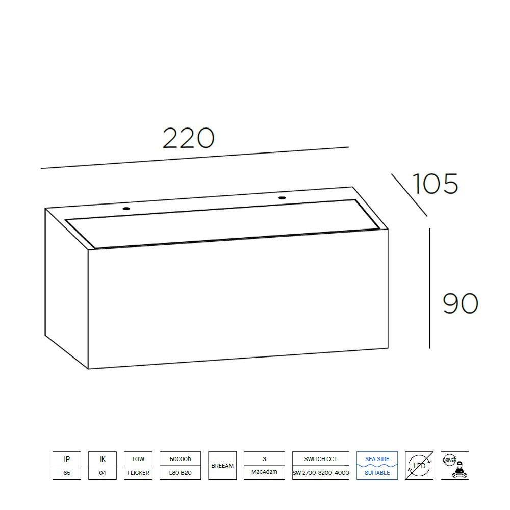 Aplique IP65 Nemesis LED 70*170mm LED 10.5W SW 2700-3200-4000K ON-OFF Gris urbano 834lm