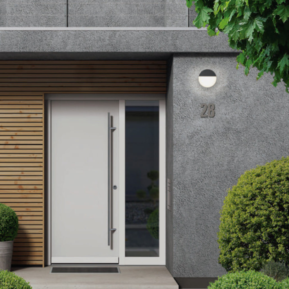Aplique LED de exterior con IP54 y cuerpo de aluminio acabado en negro. En formato redondo, de 10W y 800lm. Luz neutra 4000K.