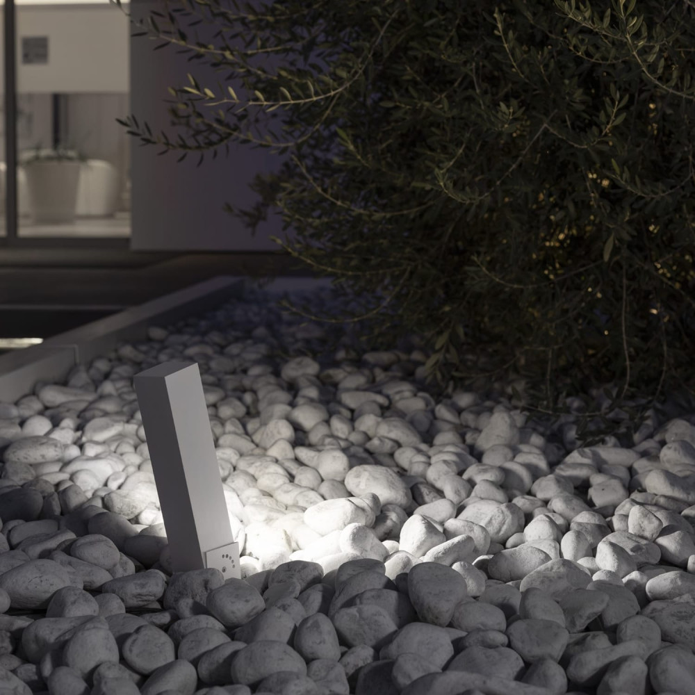 Cuerpo de aluminio fundido a presión; alta resistencia a la oxidación gracias al tratamiento de cataforesis y a la pintura con resinas de poliéster estabilizadas contra los rayos UV. Difusor de vidrio templado y serigrafiado. Juntas de silicona. Reflector de aluminio anodizado. Pernos de acero inoxidable A4. Producto inaccesible suministrado con conector rápido enchufe IP68 con barrera anticondensación.