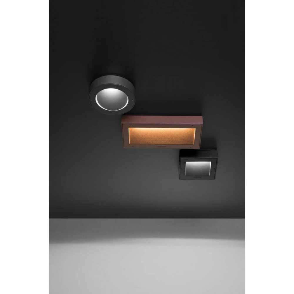 Adecuado también para uso en exteriores. Cuerpo de aluminio primario fundido a presión EN-AB46100; elevada resistencia a la oxidación gracias al tratamiento de pasivación a base de circonio y pintura en polvo a base de resinas de poliéster, UV estabilizada. Difusor de vidrio templado efecto satinado. Juntas de silicona. Pernos de acero inoxidable A4 o AISI 316L. Sistema de cierre con tornillos imperdibles retractiles de cabeza hexagonal. Preparado para doble entrada de alimentación.
