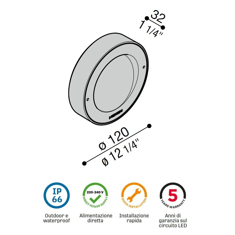 Aplique de superficie exterior IP66 IK10 6W Ø12cm