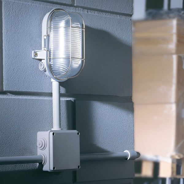 Un clásico para los ambientes de servicio, en las dos formas redonda u ovalada para adaptarse incluso a los espacios más estrechos. El difusor de vidrio puede protegerse mediante una sólida rejilla.