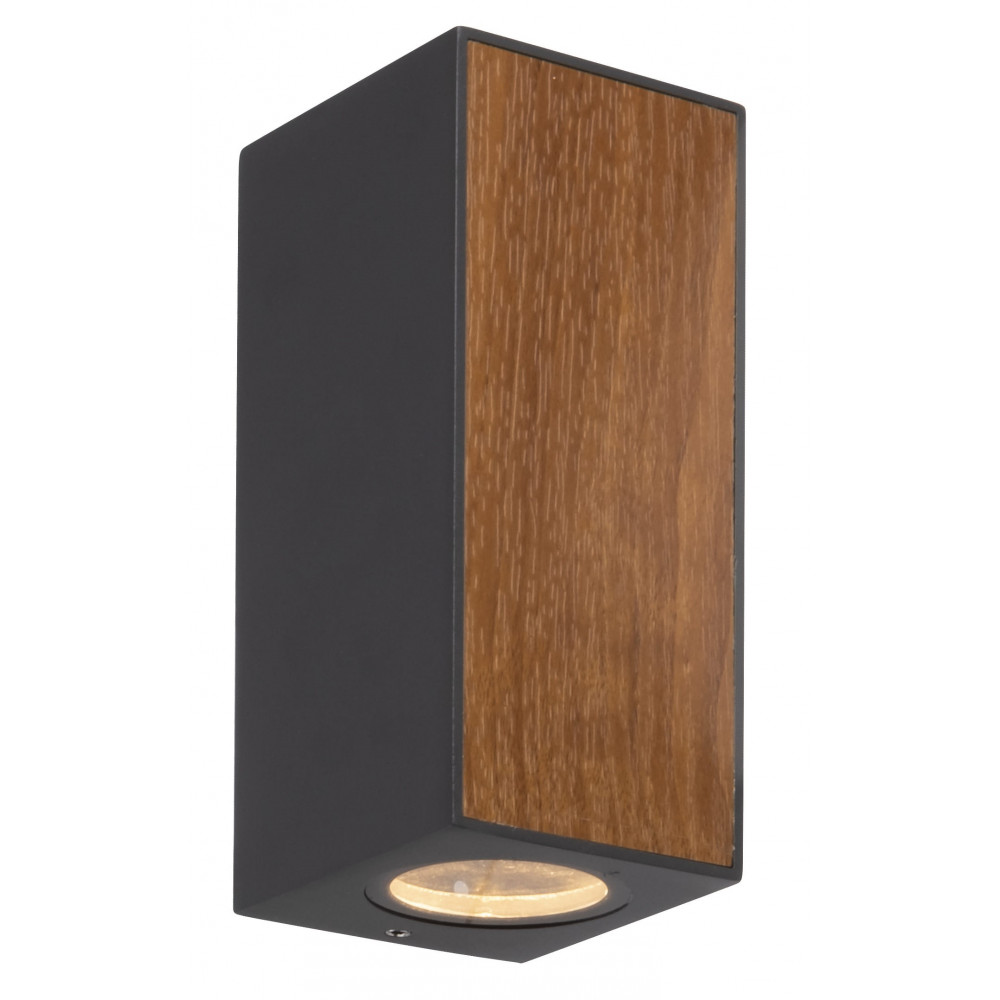 Aplique para exteriores fabricado en aluminio y madera con protección IP65.