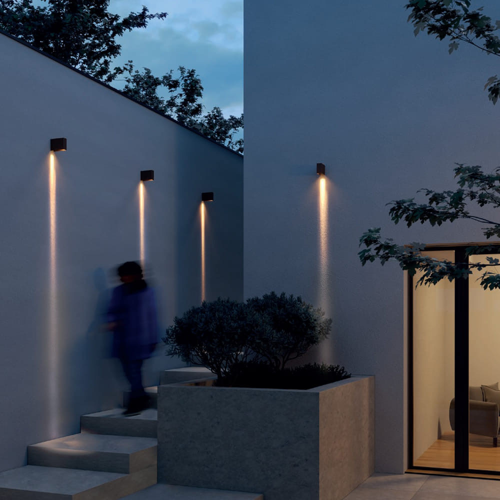 Aplique-baliza LED IP65 con un haz de luz estrecho de 3,5º, acabado corten. 9W, 2700K/3000K, 310/322 lm