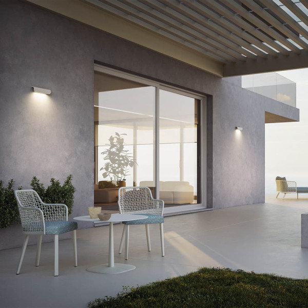 Aplique de pared LED IP65 fabricado en hormigón acabado gris oscuro, apto para zonas costeras. 8,8W, 2700K/3000K, CRI90