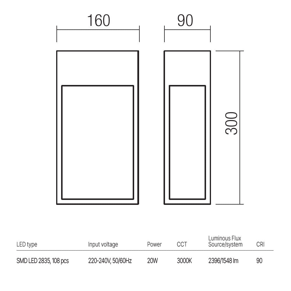 Aplique LED IP65 acabado gris oscuro para exterior. 20W, 1548lm, 2700K o 3000K, CRI90, IP65