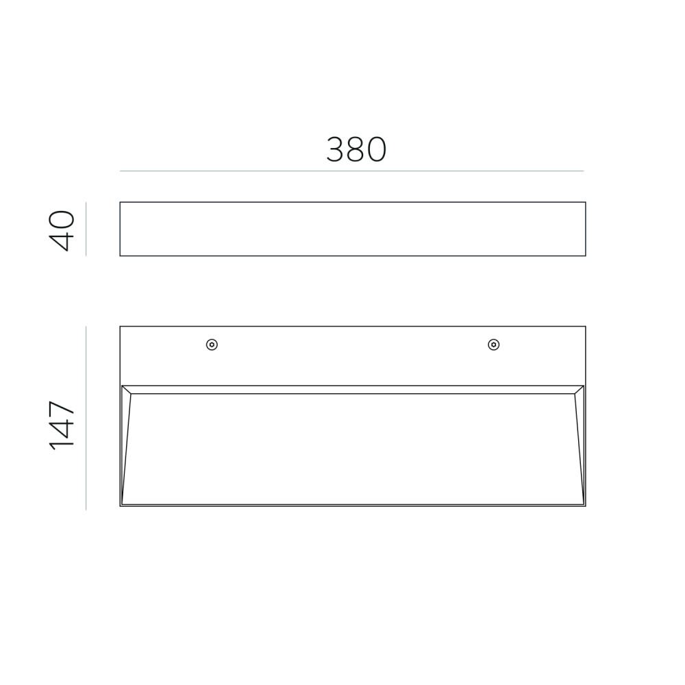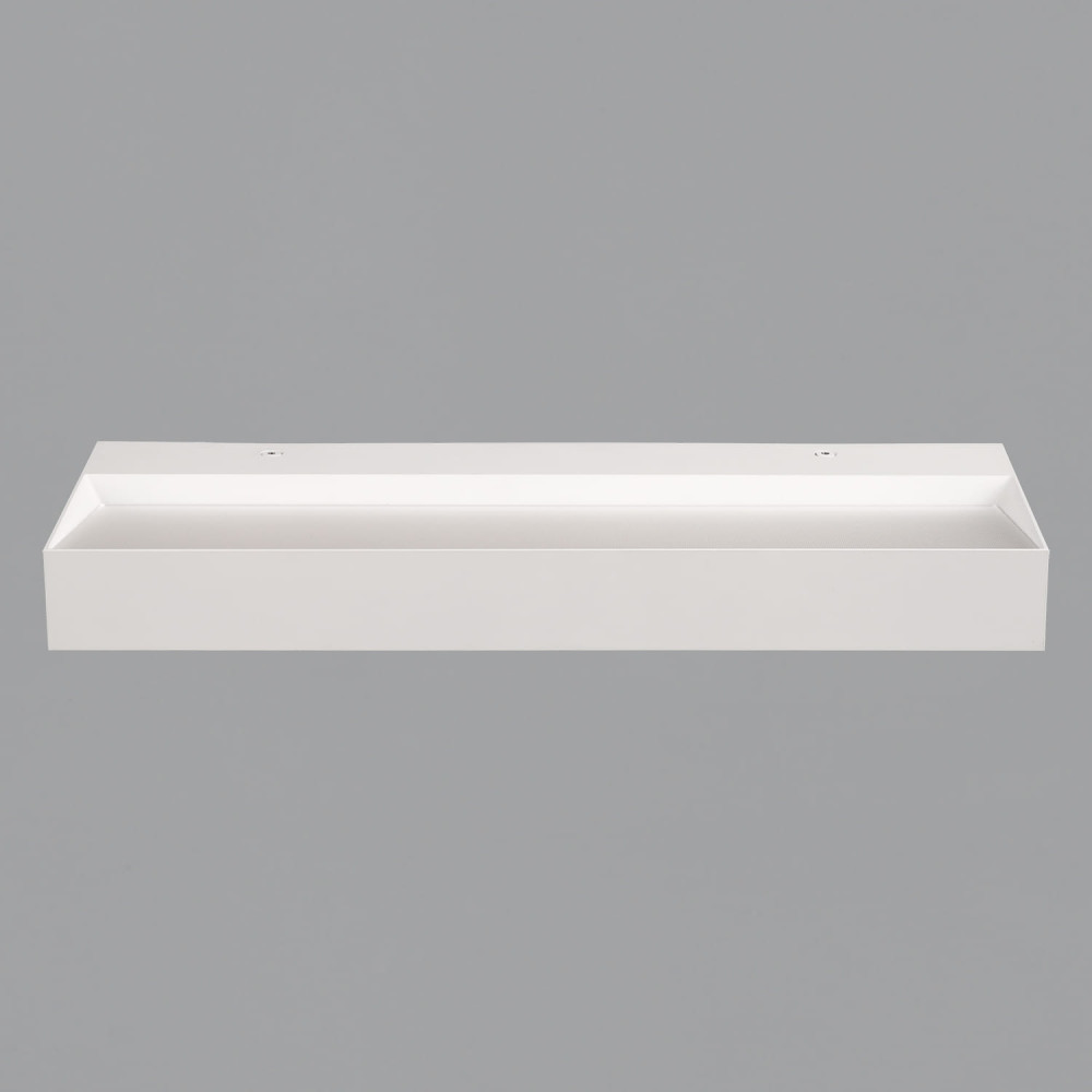 Colección de apliques de alta luminosidad y rendimiento. Fabricados en metal disponible en dos colores: blanco o negro texturado y tres tamaños de longitud: 205 mm, 380 mm y 556 mm.
