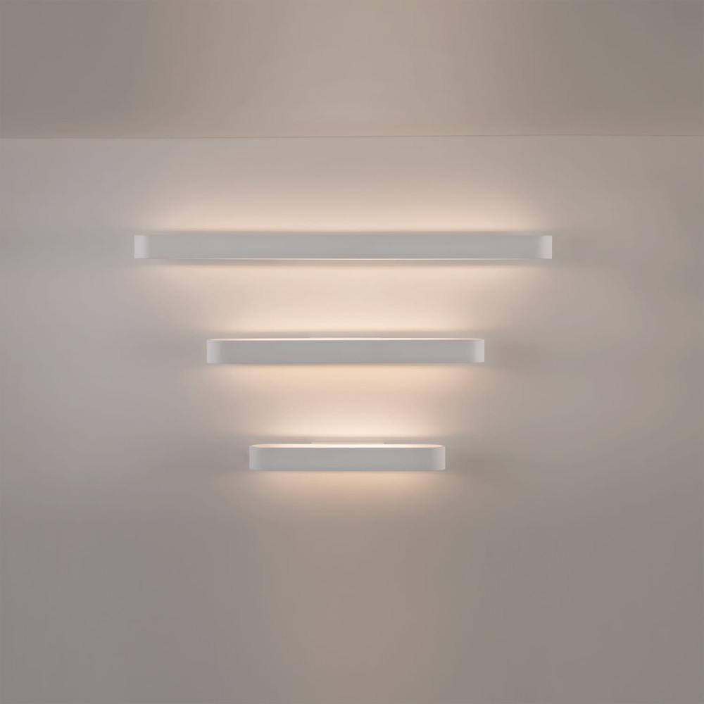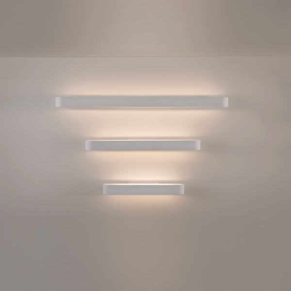 Aplique de pared LED para iluminación interior. Disponible en tres colores: blanco, negro y oro.