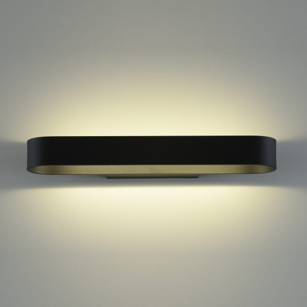 Aplique de pared LED para iluminación interior. Disponible en tres colores: blanco, negro y oro.