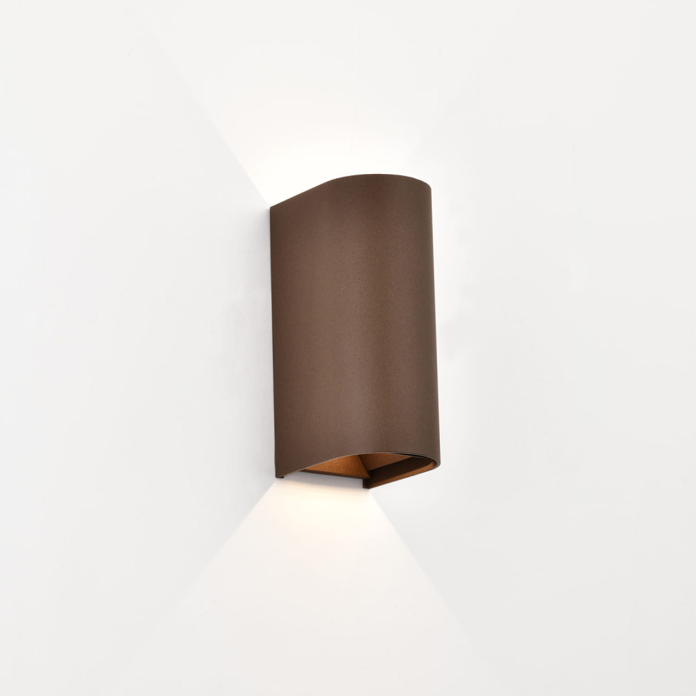Aplique LED corten bidireccional 1060lm, CRI90 y CCT Switch (2700K-3000K). Diseño estanco IP65 con lamas orientables para efectos lumínicos.