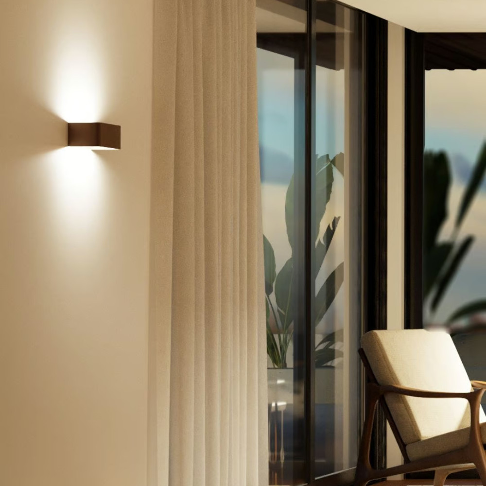Aplique corten de doble emisión LED. 7W, SWITCH 2700K/3200K/4000K.