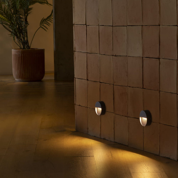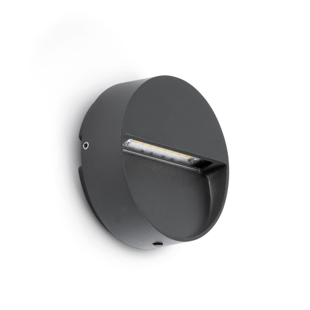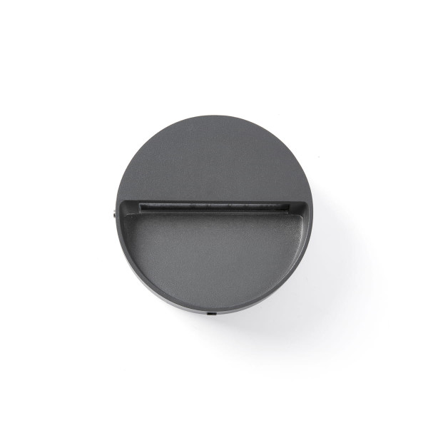 Aplique redondo de exterior gris oscuro, permite elegir entre 4 temperaturas de color. 3W, IP65, 170/187/196/215lm