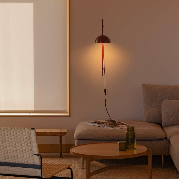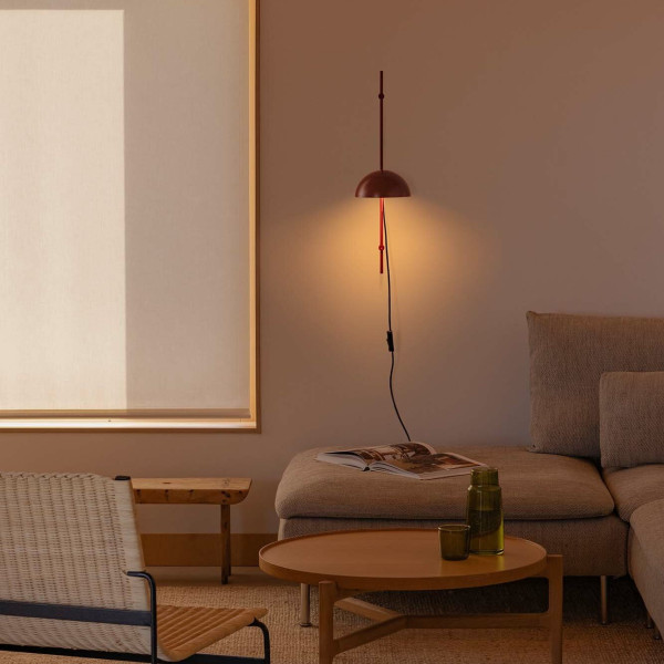 Aplique de pared metálico móvil con cable de 2,5 metros, acabado granate. 1 x E14 LED (no incl.)