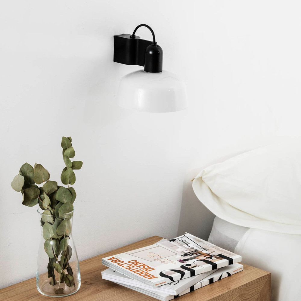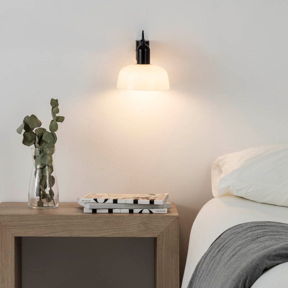 TATAWIN Aplique Negro Satinado Pantalla Blanca Opal 1xE27
