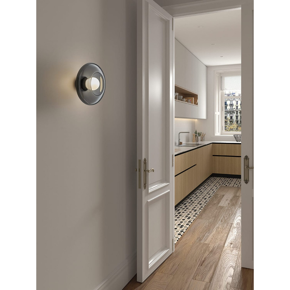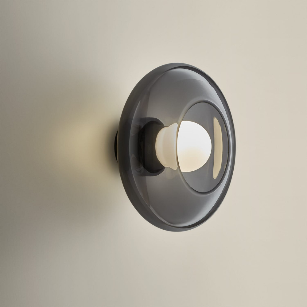 Aplique de pared de vidrio soplado diseñado en formas puras Fumé Ø26cm