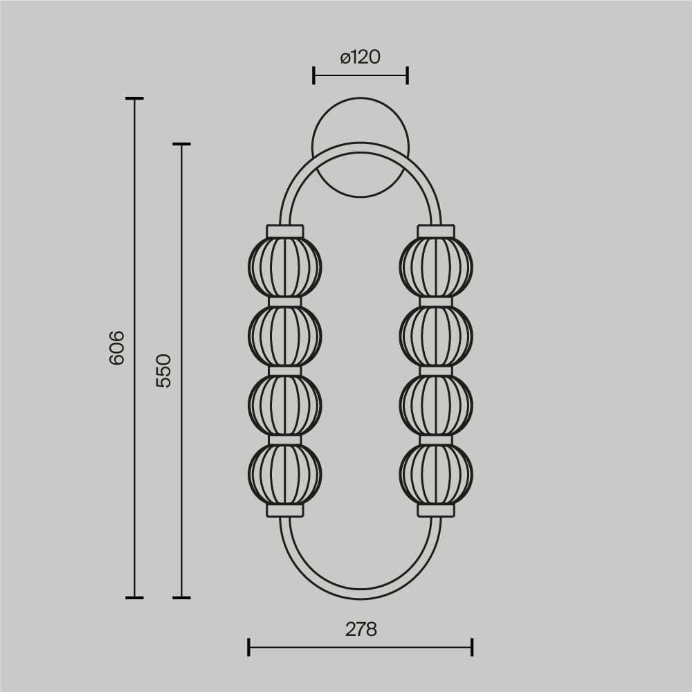 La serie presenta composiciones cautivadoras formadas por numerosas “cuentas” elaboradas en vidrio fundido de alta calidad, cada una decorada con un patrón texturizado y repetitivo que genera un dinámico juego de luz y reflejos. La fuente de luz LED recorre estas cuentas como un hilo, realzando su encanto luminoso.