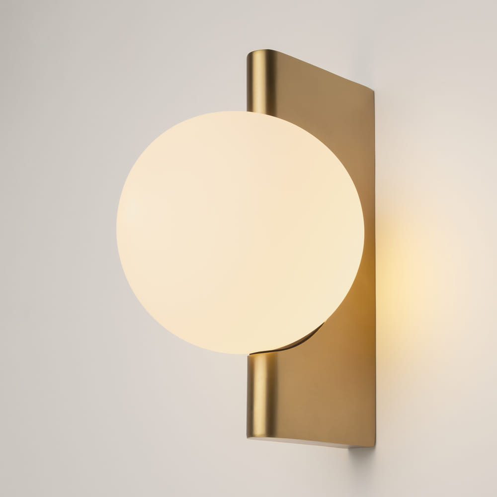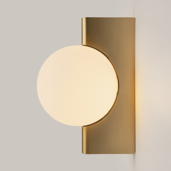 Aplique de pared geométrico acabado en negro con esfera de vidrio opal. 1 x G9 LED (no incl.)