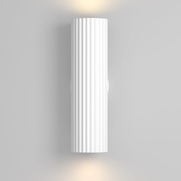 Aplique de pared blanco doble con diseño metálico y un patrón gráfico texturizado. 24W, 2700K, 1620lm, 36º