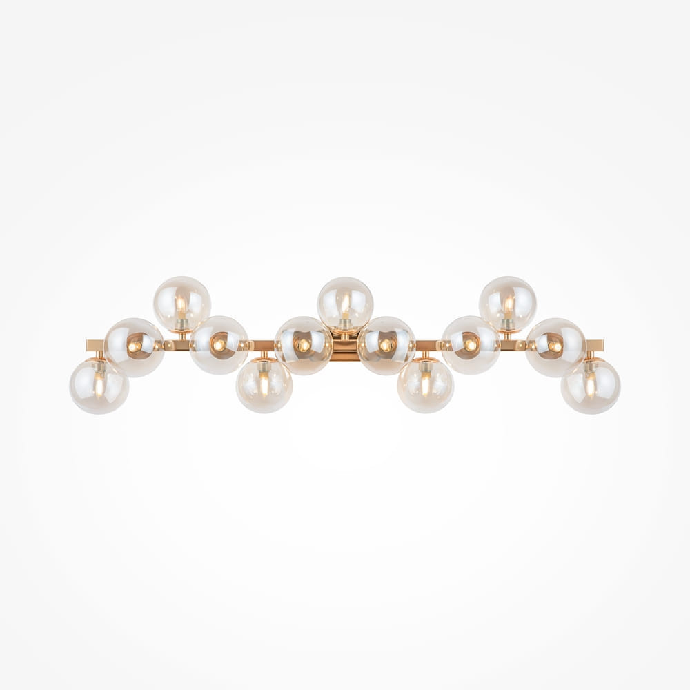 Aplique de pared fabricado en metal acabado dorado con 13 tulipas de vidrio ámbar. 13 x G9 LED (no incl.)