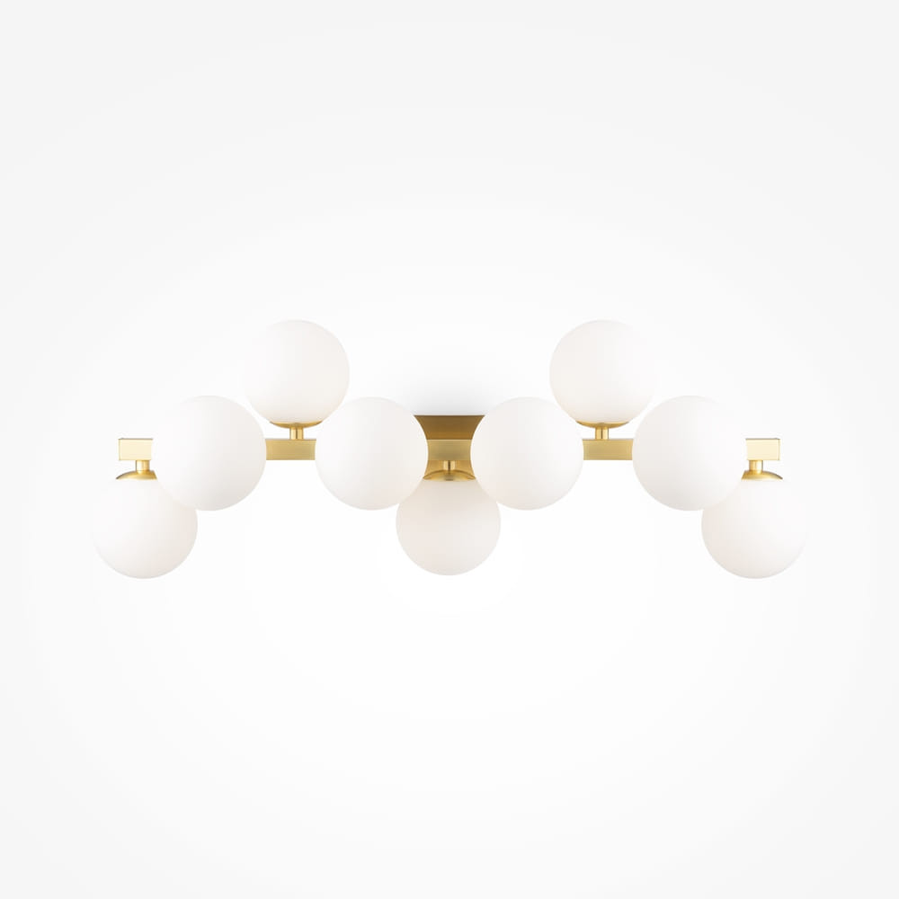Aplique de pared fabricado en metal acabado dorado con 9 tulipas de vidrio opal. 9 x G9 LED (no incl.)
