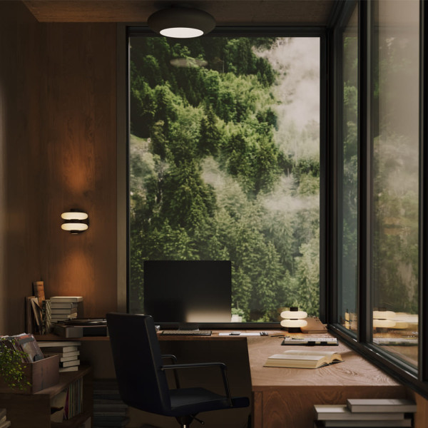 El corazón de Nuvem reside en su vidrio opalino dispuesto en capas. Esta configuración no es solo estética; permite que la luz se filtre de manera uniforme, eliminando sombras duras y creando una atmósfera cálida y equilibrada. El resultado es una presencia luminosa, calmada y envolvente que transforma el carácter de cualquier habitación.