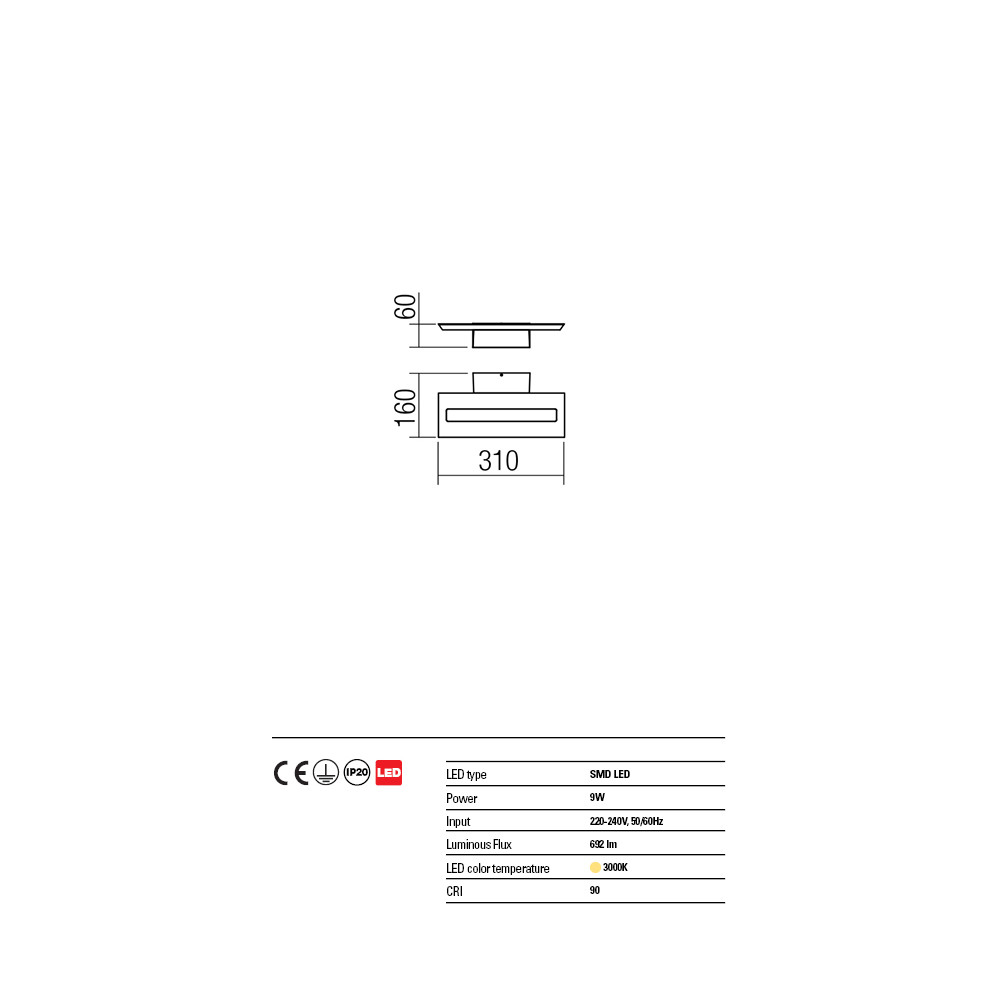 Aplique de pared para iluminar techo blanco 3000K, 692lm, CRI 90