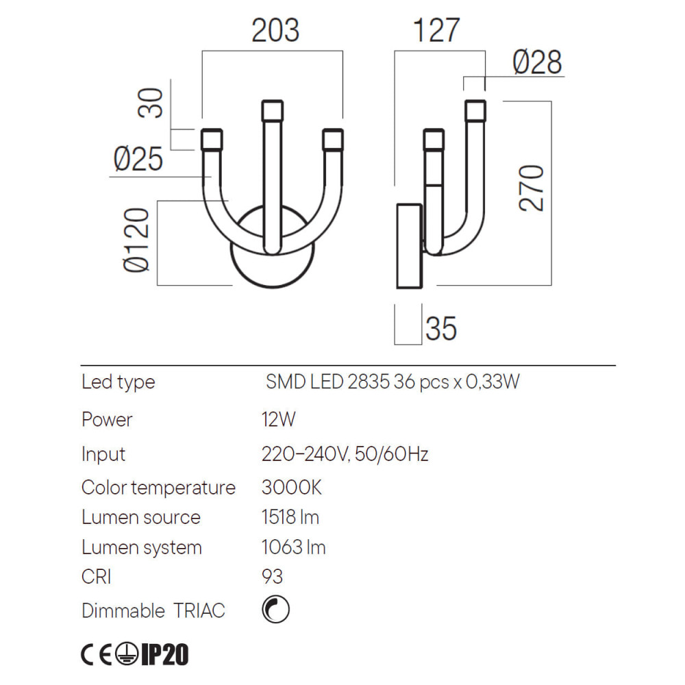 LUXOR Aplique LED dimmable TRIAC 12W 3000K L200 negro brillo.