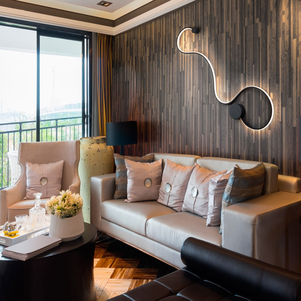 GRAFOS es la ejemplificación de la creatividad. Sus curvas se pueden combinar con varios diseños para crear una composición propia en la pared. Disponible en acabado de pan de oro, negro y blanco mate.
